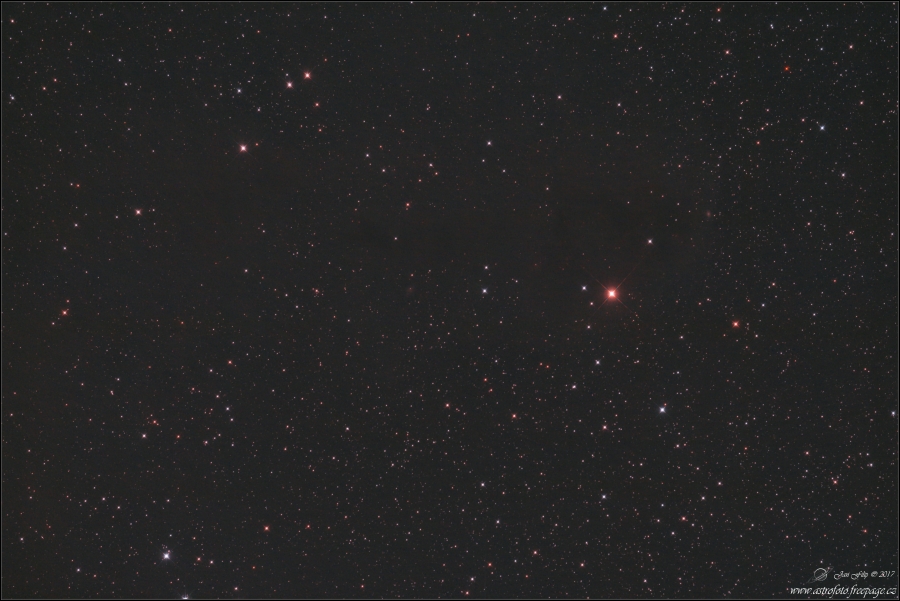 První fotka z upraveného dalekohledu. Temný molekulární oblak prachu je velice obtížný na zachycení - zde je výsledek po třech hodinách. Jednotlivé expozice měly 10 minut. Na fotce se nepříznivě podepsala i fáze Měsíce. Díky tomu bude následovat dofocení dalších dat. Celkový čas bych viděl odhadem něco kolem 10 hodin - minimálně :)