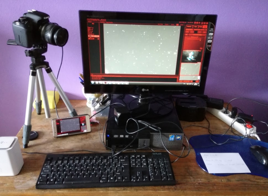 První snímek, který s určitým omezením jakž takž vypadá, z dalekohledu po úpravě. Ještě to není úplně ono, ale s přimhouřenýma očima se na to dá dívat. Další seřízení odloženo až po výrobě nového výstupu na DSLR.