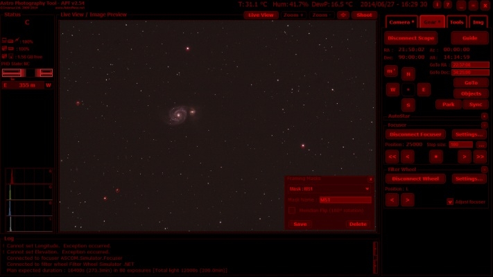 Newton 135/550, Canon 1000Da, EQ - 6, řízení APT 3.13