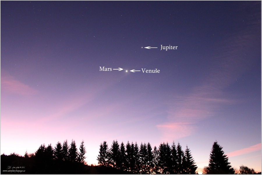 Po celý měsíc říjen se můžeme kochat seskupením tří planet nad jihovýchodním obzorem v ranních hodinách.