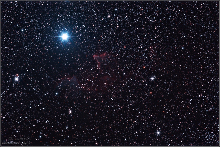 Mlhoviny kolem gama Cas, IC 59 a IC 63. Jedná se o cca hodinu dat před východem Měsíce. Obloha nebyla úplně jasná, je patrný zákal. Přesto mám ze snímku radost, protože je to první snímek z již dokončené pozorovatelny!