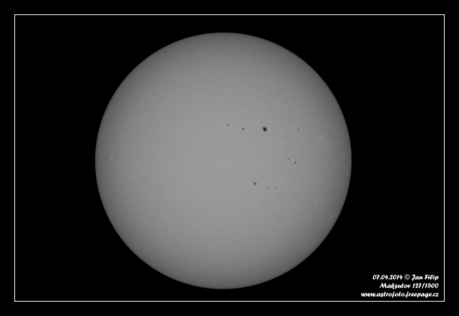 Troch jiné zpracování, největší změna je použití masky pro vyrovnání jasu po celé ploše Slunce, jenž je způsobeno tím, že paprsky k nám nepřilétají kolmo, ale vychází ze středu. Při následném zvýraznění skvrn se to ještě více projeví.