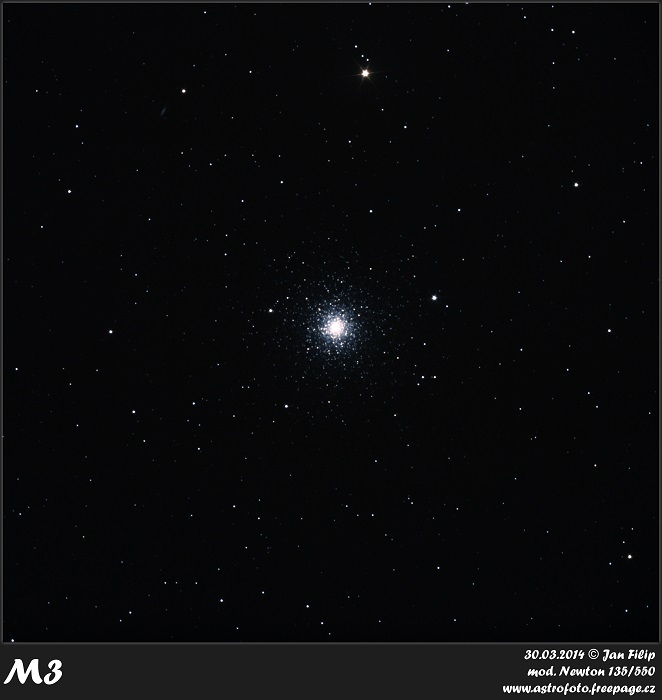 Galaxie, jenž je zachycena v levém horním rohu, má označení NGC 5263 a její jasnost je 14.mag.