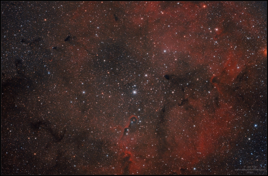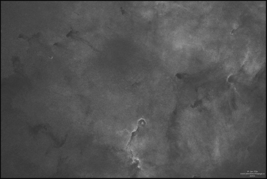Pohled do středu této rozsáhle mlhoviny. Dole je vidět její známější část, která má přezdívku Sloní chobot. Smyslem bylo zachytit okolní tmavá oblaka, což se tak nějak povedlo.