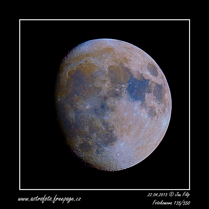 Konečně jsem se dočkal k avizované zkoušce fotokomory. Při zpracování Měsíce v takto saturovaných barvách se projeví jakákoliv barevná vada. A zde je výsledek.