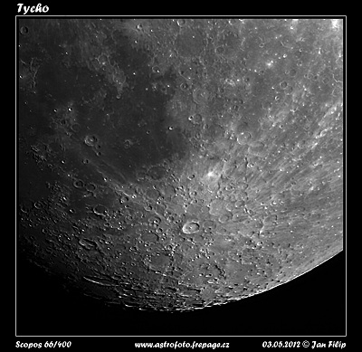 Kráter Tycho vznikl dopadem velkého meteoritu, zhruba před 100 milióny lety. Je tedy vcelku mladý, alespoň co do porovnání s dalšími útvary na Měsíci. Jeho rozměry jsou cca 88x52 km. V jeho středu jsou tři centrální vrcholky, bohužel na jejich pozorování je již nutný vetší dalekohled.