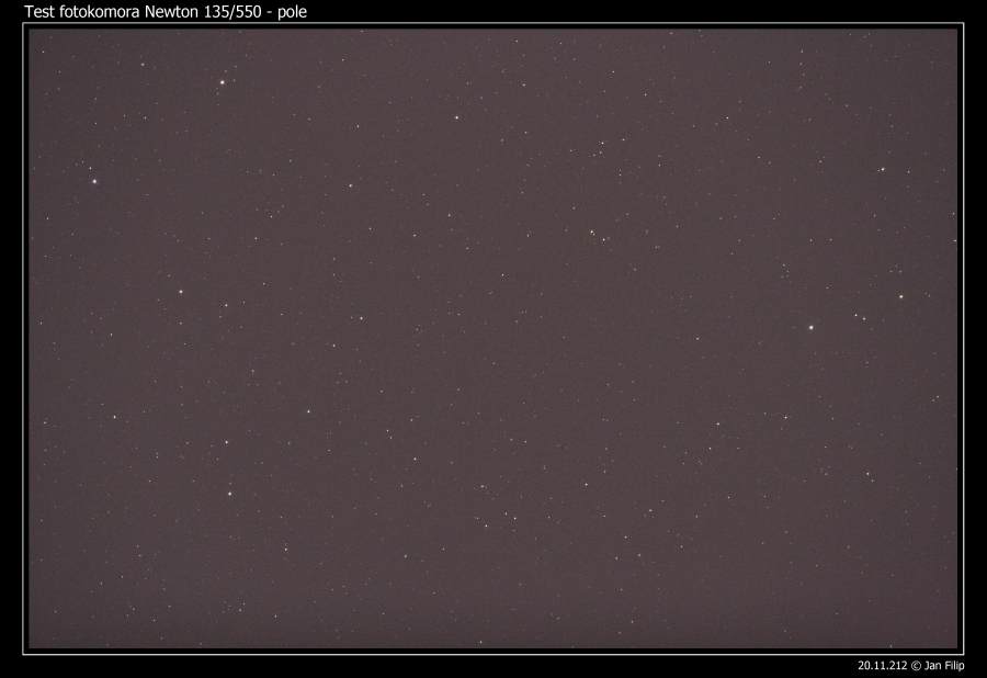 Konečně se podařilo ustavit a pořídit snímek hvězdného pole pro představu, jak kreslí.