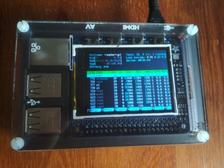 špičce může dosahovat i 60%, v režimu CLI. V konečné verzi mám přidán PiTFT 2,2" 320x240 HAT displej, tutoriál jak instalovat je zde: