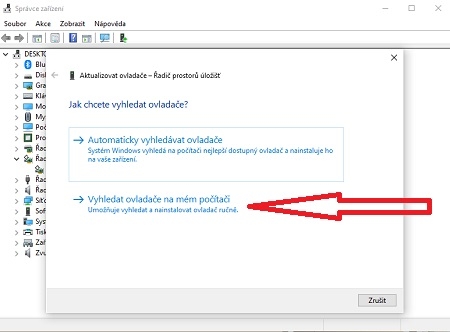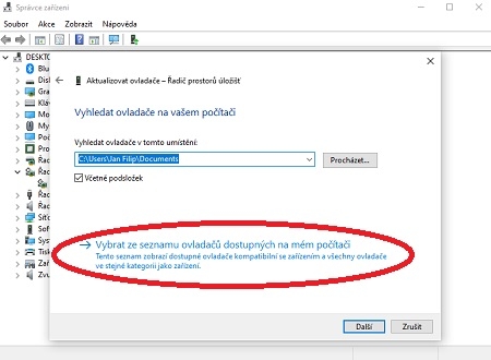 konkrétního ovladače. Po nainstalování ve správci zařízení klikněte na aktualizovat ovladač. V