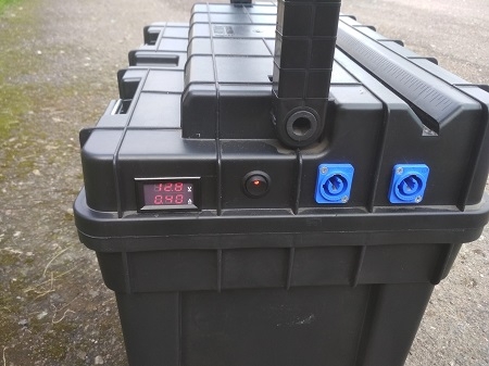 kompletním sestavením jsem celá zařízení přesunul do boxu s kolečky, takže manipulace s baterii bude