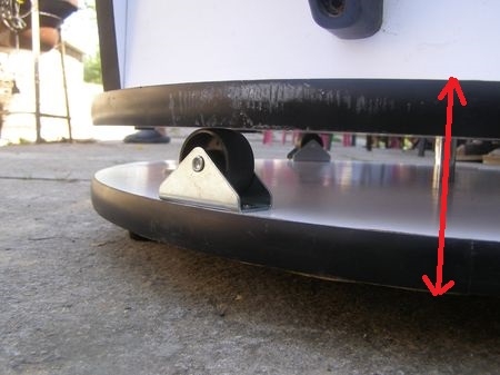 Na tuto plošinu, avšak blíže ke kraji, přiděláme tři kolečka v odstupu 120 stupňů.