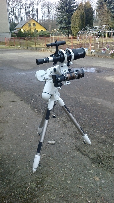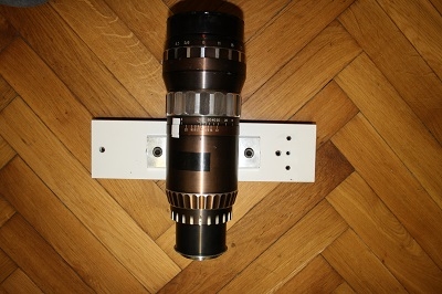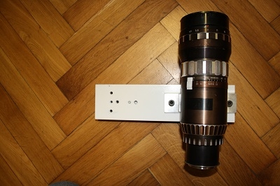 objektiv Tair 300 mm. Vyvstal ale problém, jak to uchytit na montáž? K hlavnímu dalekohledu jsem to