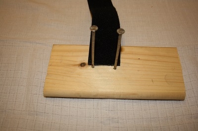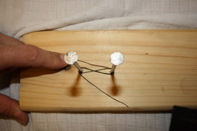Do prkénka jsem si zatloukl hřebíky dle obrázku. Ty slouží k navinutí drátu do spirály a pomůže to udržet stejnou vzdálenost mezi jednotlivými smyčkami.