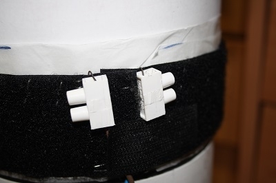 Na oba konce drátu jsem z druhé strany přidělal svorkovnici a ze spodní strany na zip přidělal protikus tak, aby se dal pásek přidělat na tubus.