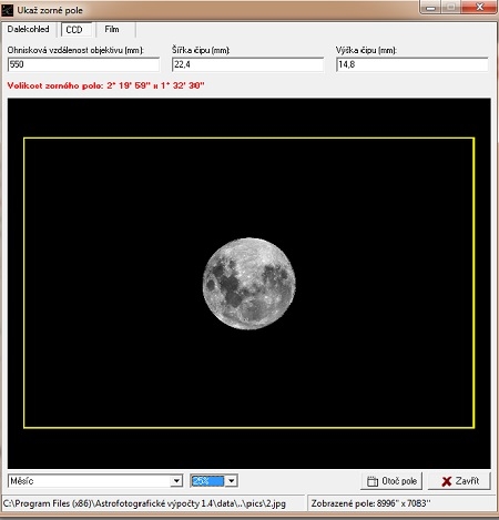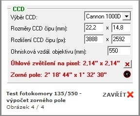 také si udělat představu o úhlové velikosti snímaného objektu. Samozřejmě u ohniska 550 mm